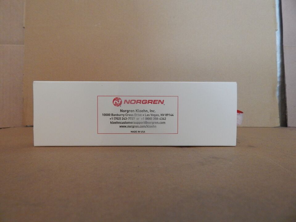 A white box with red text that reads: Norgren, Made in USA.